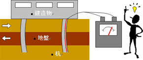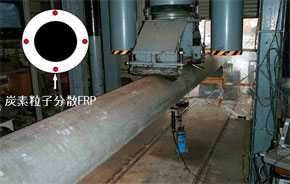 様々な建造物の支えとなるコンクリート杭は、地中に埋められていることから地震など災害時に受ける損傷を診断することが非常に難しいとされておりました。そこで、研究具体例1にて紹介した炭素粒子分散FRPをこの杭の健全性診断に応用する研究を進めています。
