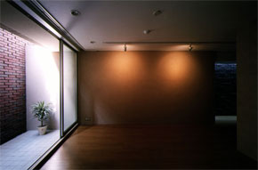 写真に示した室内は地下の居住空間として、アトリエ風に使っていただいても良いし、遮音性が良いので自分の趣味を生かす空間や書斎などにも使っていただける多様性をもった部屋となっており、大変人気の高い部屋となっている。