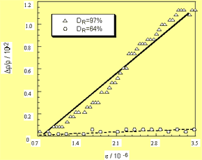 | 図 相対密度の異なる炭化珪素セラミックスの歪みに対する抵抗変化 |