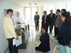 研究所の敷地内には研究棟、材料棟、PET棟、診断棟、バイオ棟など各分野の専門研究施設が集合しており、光の本質を追究する基礎研究、そこで得られた技術や知識を産業に応用するための応用研究など、幅広い研究を行っています。ノーベル賞受賞で話題となったスーパーカミオカンデに用いた20インチ光電子増倍管などを見学しました。 |