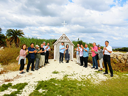 15世紀頃の琉球王朝時代この島を納めた「世の主加那志(ヨノヌシガナシ)」の琉球式墓を見学しました。この墓は岸壁を掘りこんで骨を安置するトゥール墓です。