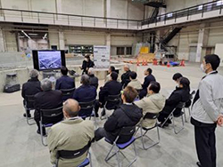 電力中央研究所・我孫子地区の紹介・説明を受け、引き続き、研究施設(大型津波実験装置、大型振動台、小型遠心載荷装置、CO2固定プロジェクトに係る装置など)を見学しました。